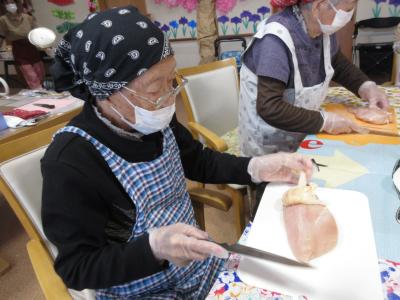 母二人で~肉を入れる人~あげる人~と手分けして!揚げてくれました