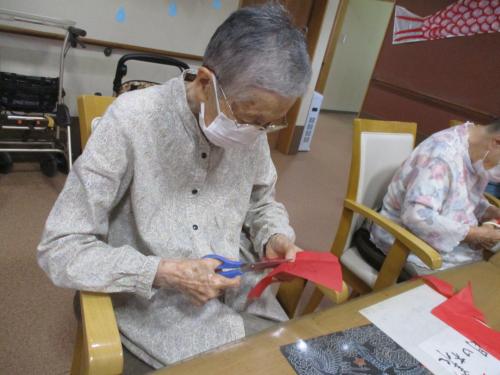 皆さん、かなり集中して~金魚の形に切っていたようです