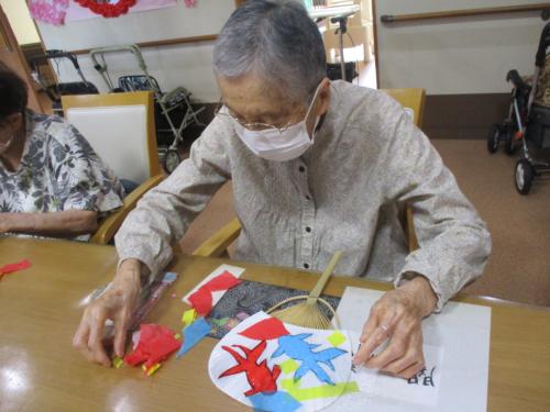 先ずは~うちわに!!!金魚をはっつけていきます