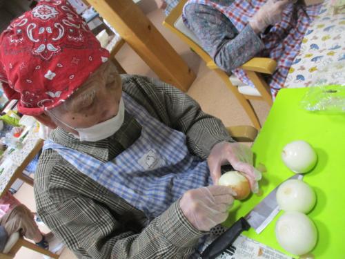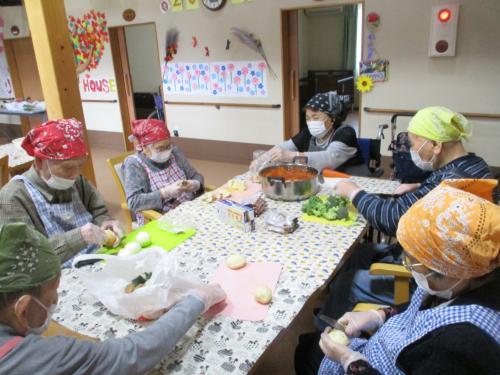 皆さん・・・慣れているので~皆で協力して!!まずは材料を切って下さいます