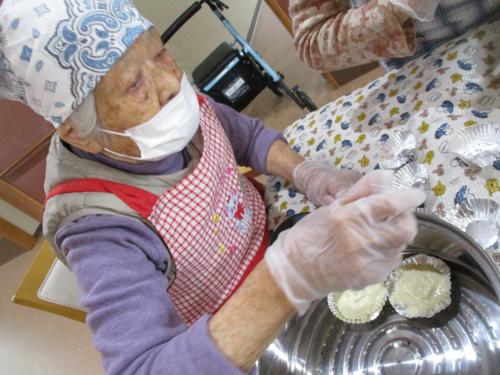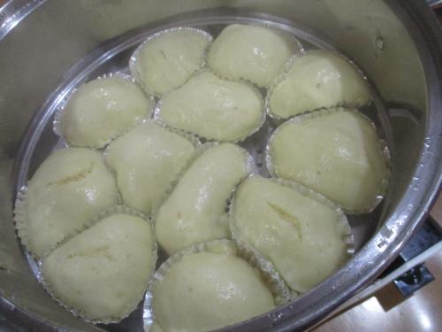 蒸しあがった~蒸しパンに!!!最後の仕上げを