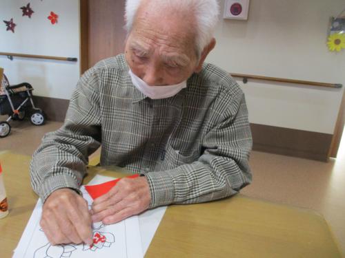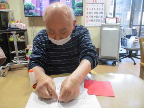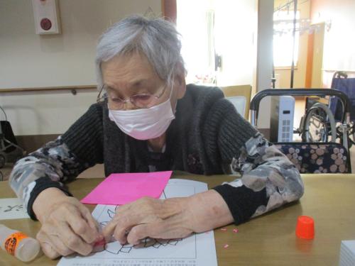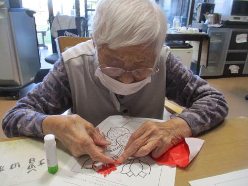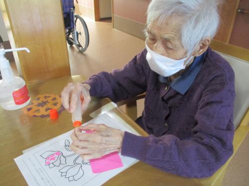 ちぎり絵をやっちゃいまーす手 (チョキ)わーい (嬉しい顔)わーい (嬉しい顔)