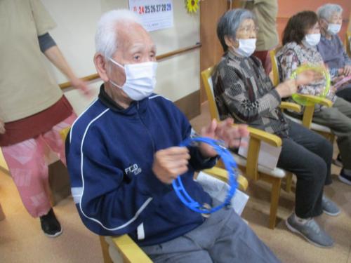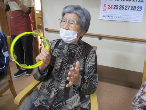 タンバリンで声援を送ります