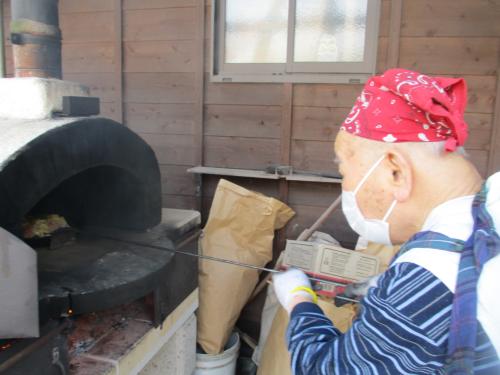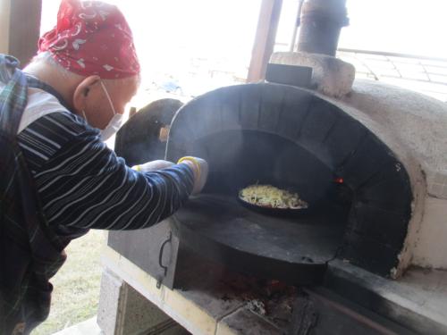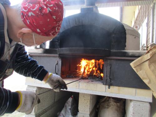 ピザを窯へ