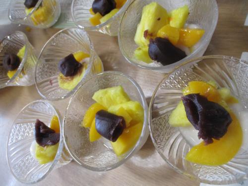おやつはフルーツたっぷりの白玉あんみつにしたいと思いますdouble exclamation
