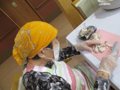 お母さん、野菜を切り終えてニッコリ素敵な笑顔が