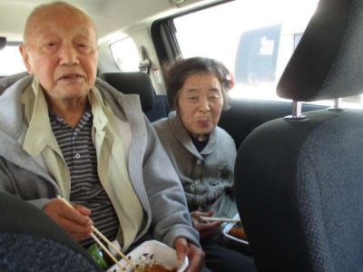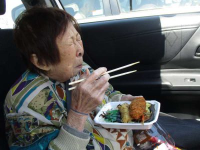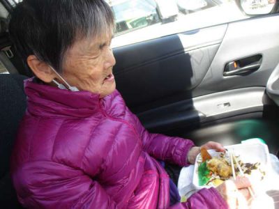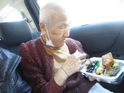 今日は風が強く、冷たいので車内にてお弁当を食べました