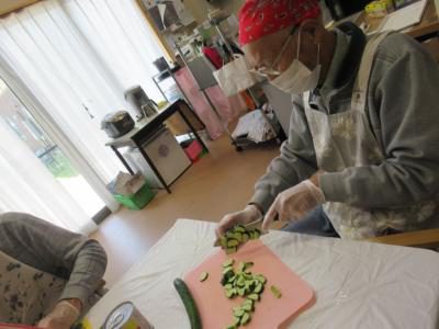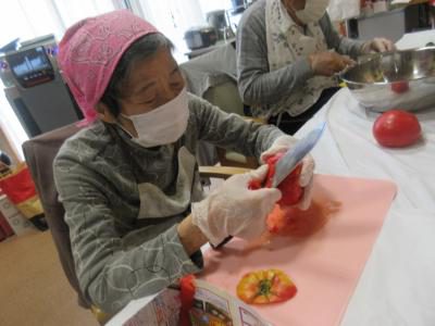材料をドンドン切っていく、陽だまりのシェフの皆さんなのです