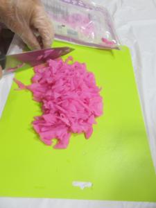 シェフ達相談して、漬物を細かく切ってみよう
