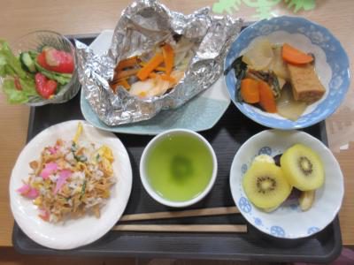 今日のランチは鮭のホイル焼き