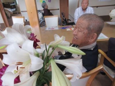 オーナーが、大きな紫陽花と見事なカサブランカを