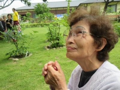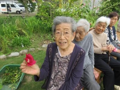 母も、見事なお花を目の前にして!