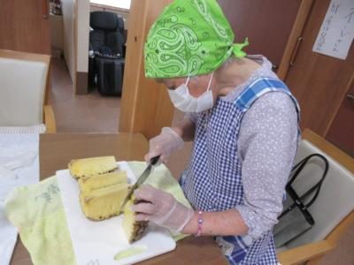 周りが堅そうなパイナップルもサクサク切っちゃいますわーい (嬉しい顔)