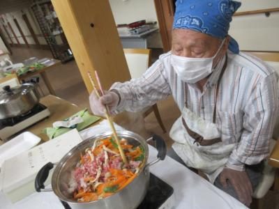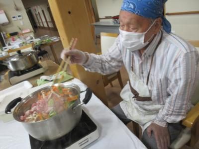 煮込み担当の父も焦げ付かないように時々ひっくり返しながら
