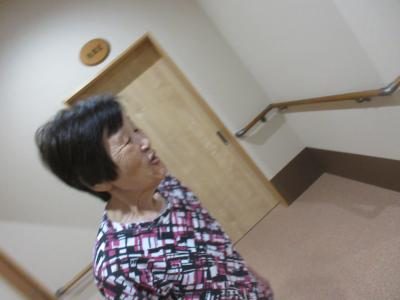 廊下を歩く母の前に