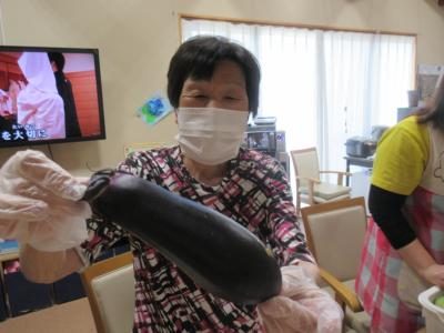 切っていると第二陣、茄子とミニトマトの到着