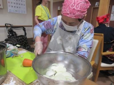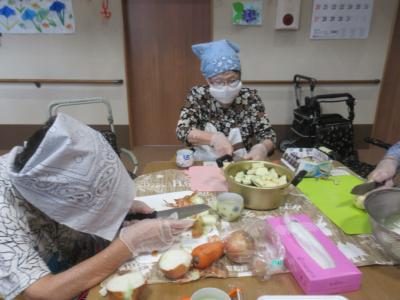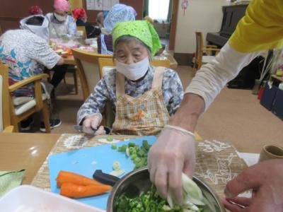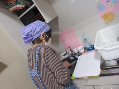 お互いに助け合いながら、エプロン等を着て準備完了~~