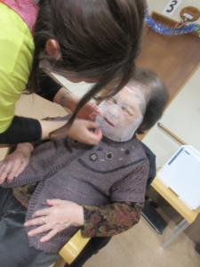 顏のしわ伸ばしもしちゃうわ~と伸ばし伸ばしdouble exclamation