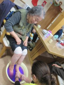 パックをしながら足湯を楽しむ母るんるん (音符)