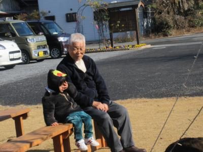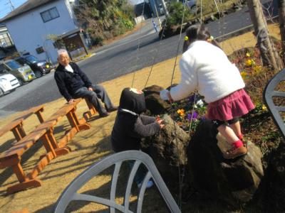 ジイジお外であそぼ~と誘われ一緒にお庭へ