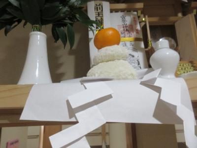 神棚も昨日飾った鏡餅で正月を迎える準備OK