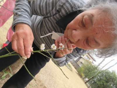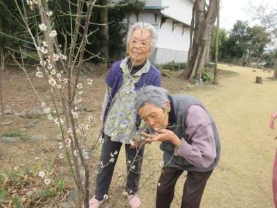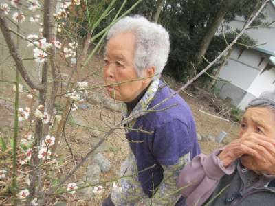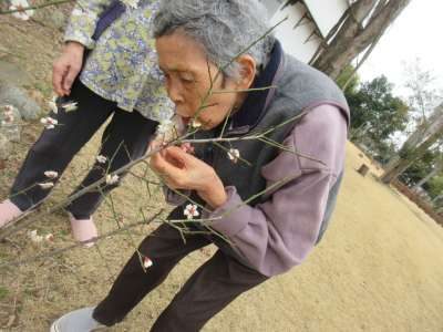 まっちゃんが持ってきてくださった、桃の花を母達がみて目がハート (顔)