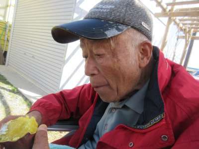 とオーナーに焼き立てのお芋をもらい割ってみると