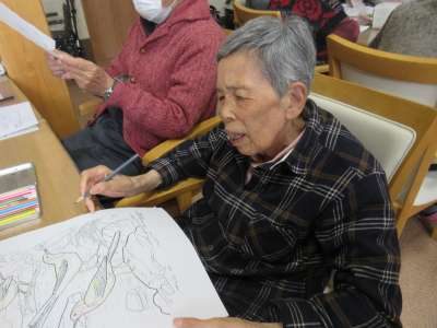 みんなで暖かい室内で大人の塗り絵をしましたよ