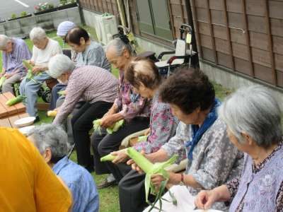 母たちがせっせとトウモロコシの皮むきをして