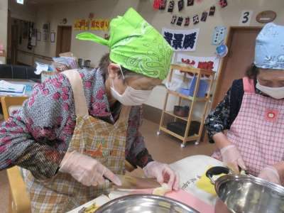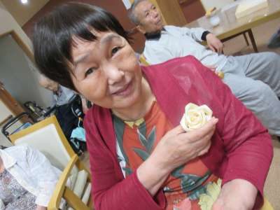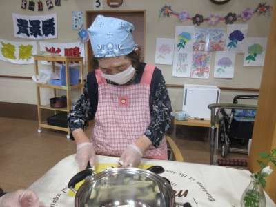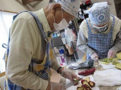 父も「やるよー!」と固いイモ🍠を切ってくださるので