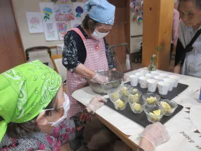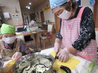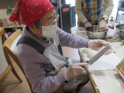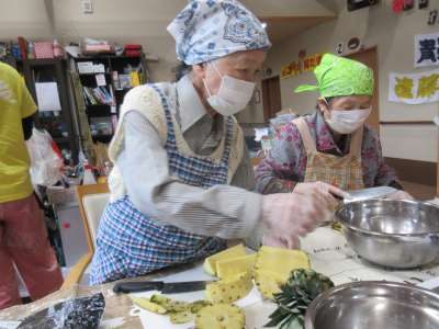 こちらのテーブルでは昼食、夕食の下ごしらえを