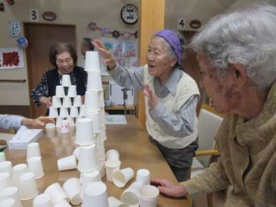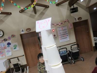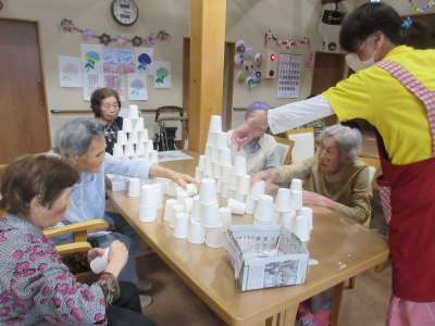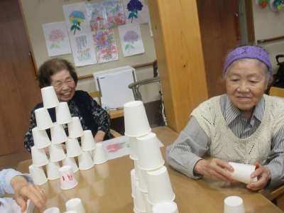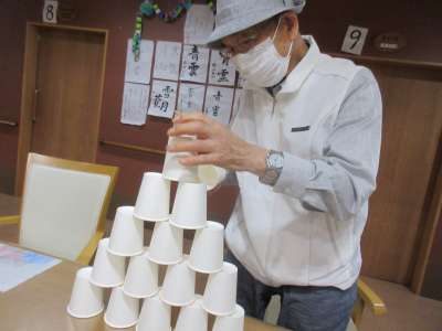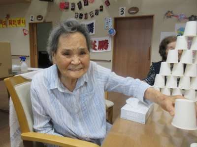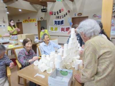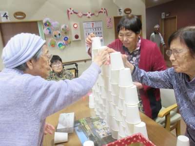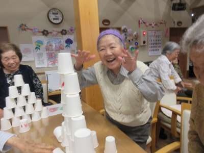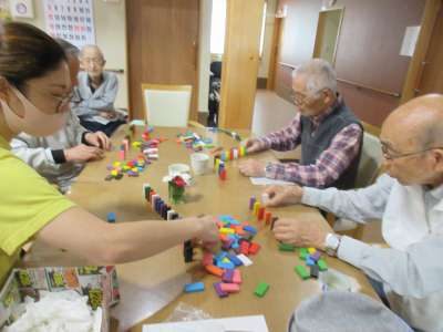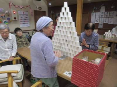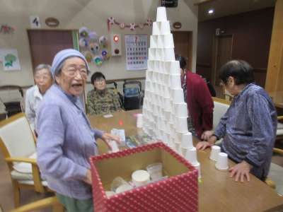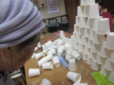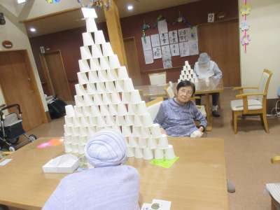 小さいタワーができたよー!お隣りさんに手伝ってもらったの