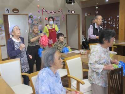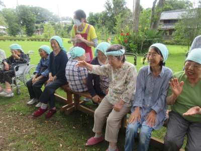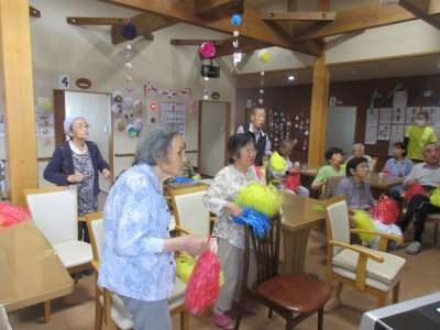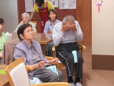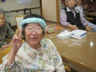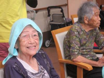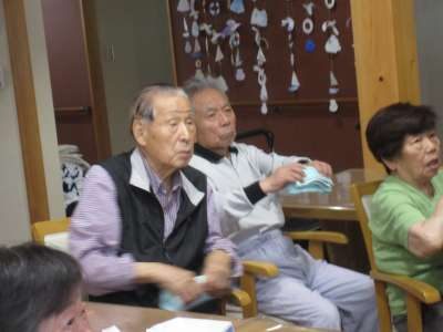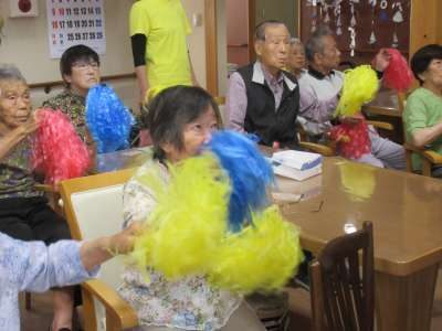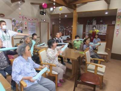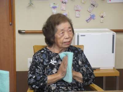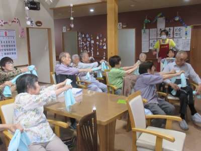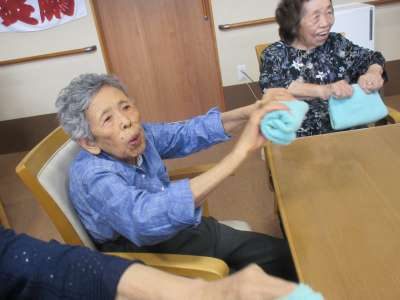 お次はタオルを持って体操しますよグッド (上向き矢印)