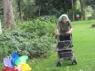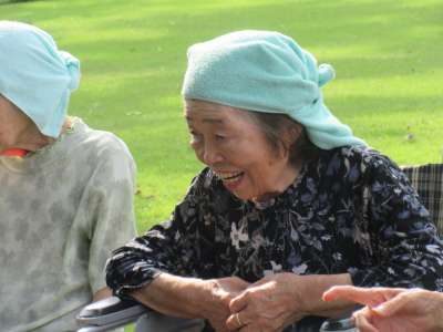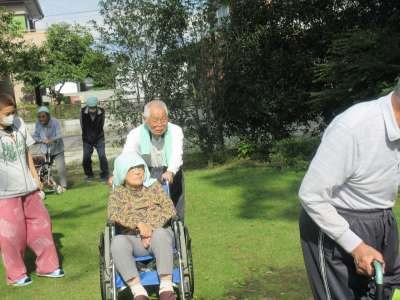 久しぶりの散歩に父も張り切って車椅子を押してお手伝いハートたち (複数ハート)