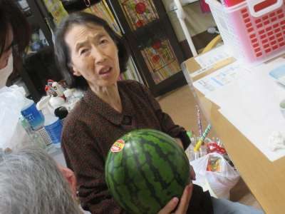このスイカどのくらい重さがあるのかなぁexclamation and question