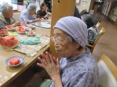 スイカ割りに挑戦だよーんグッド (上向き矢印)グッド (上向き矢印)グッド (上向き矢印)