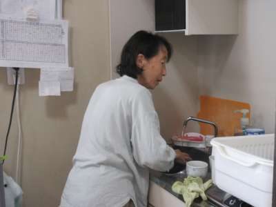 朝食後・・・たくさんの食器をスタッフが洗っているとあせあせ (飛び散る汗)