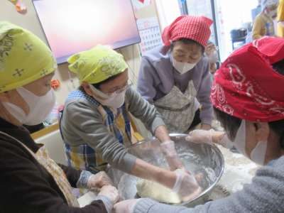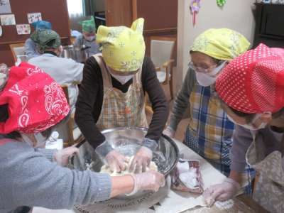 そしてみんなで協力してピザ生地を作る母達なのでした