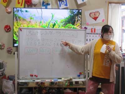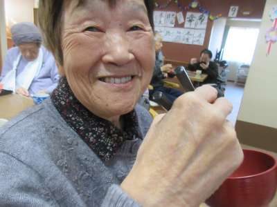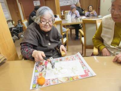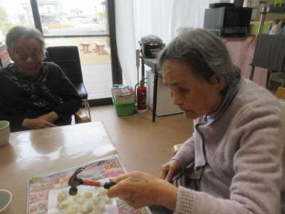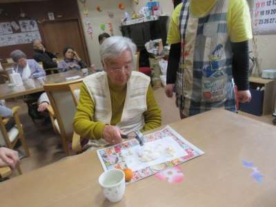 お餅を割ることに、、、。