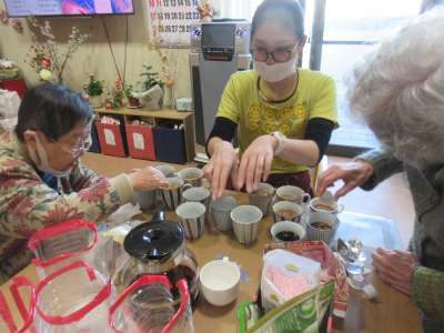お昼寝後のお楽しみコーヒータイムの準備をして下さる母達