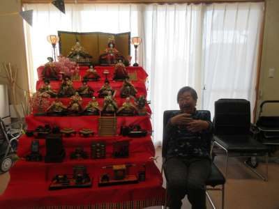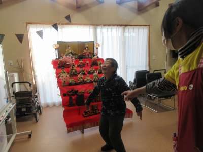 雛飾りを見ながら談笑中・・わーい (嬉しい顔)