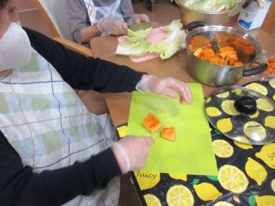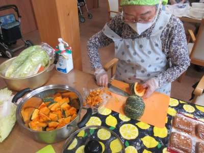 南瓜がかたくてダメだわ~と言う母に変わり、