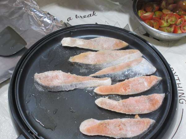 鮭に塩・胡椒、ふりふり