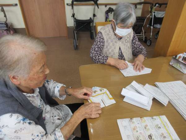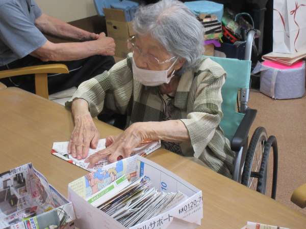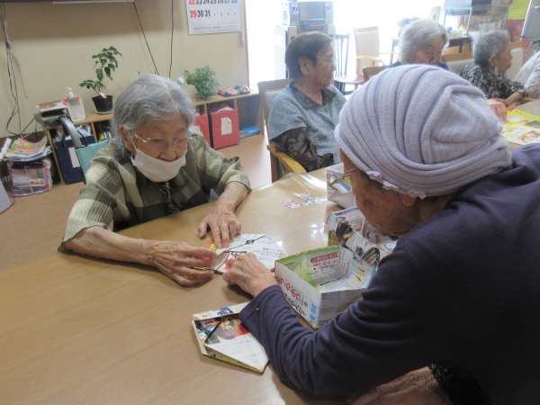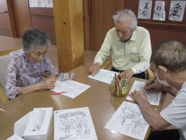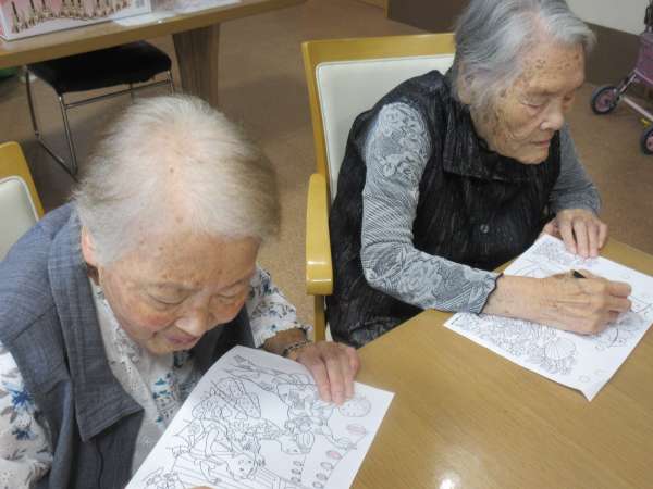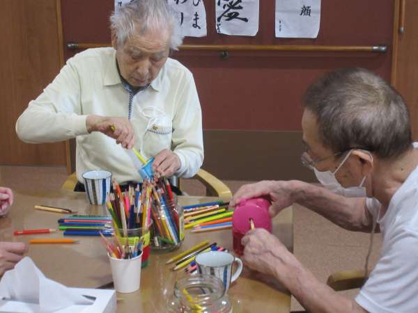 午後から行う塗り絵の準備、大量の色鉛筆を